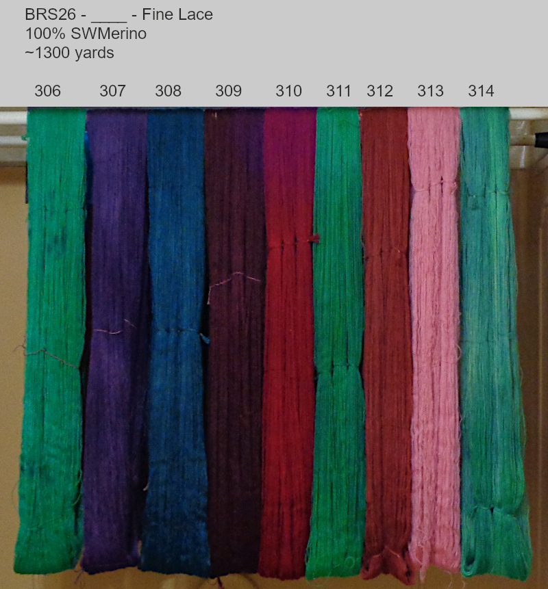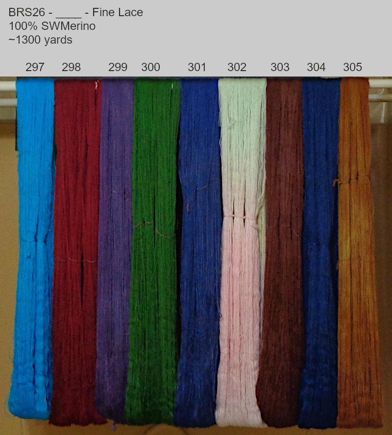 To claim the ones you want just send me an email with your selections. I will mark your selections off the Available Yarns chart below and send a PayPal invoice. On payment of your invoice, I will prepare your shipping label so that when the yarns are dried and processed I can ship them.